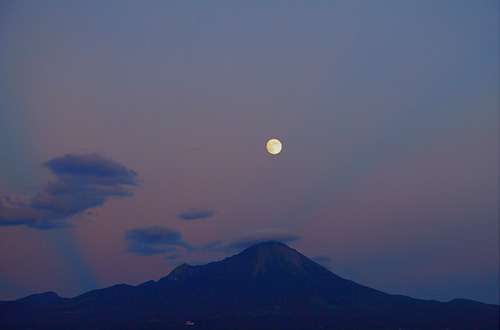 大山の山の綾線に沿って顔を出す満月。 ダイヤモンドムーン。 大山放牧場より。 別荘地より約5.5km 平成23年9月12日撮影