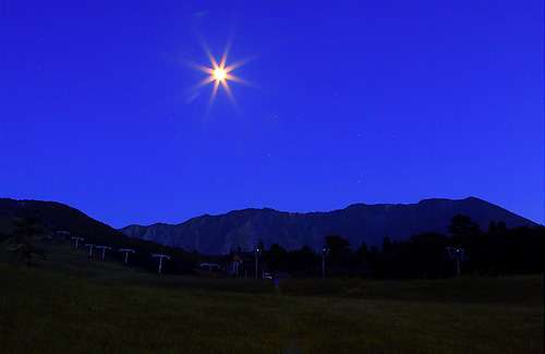 中の原スキー場前、大山北壁を照らす月明かり。 別荘地より約8.7km 平成23年9月11日撮影