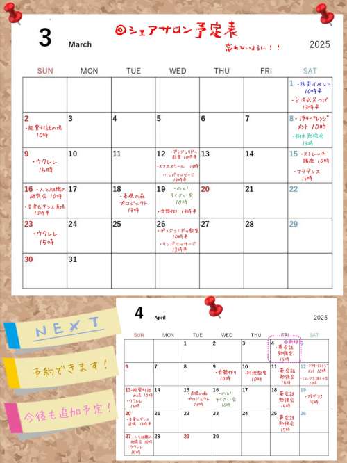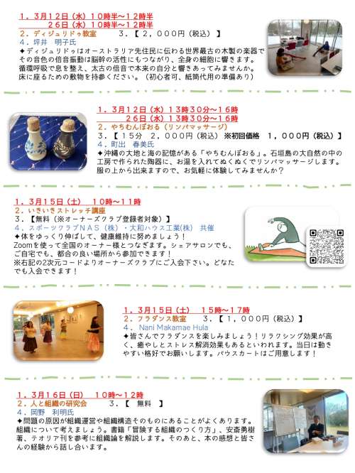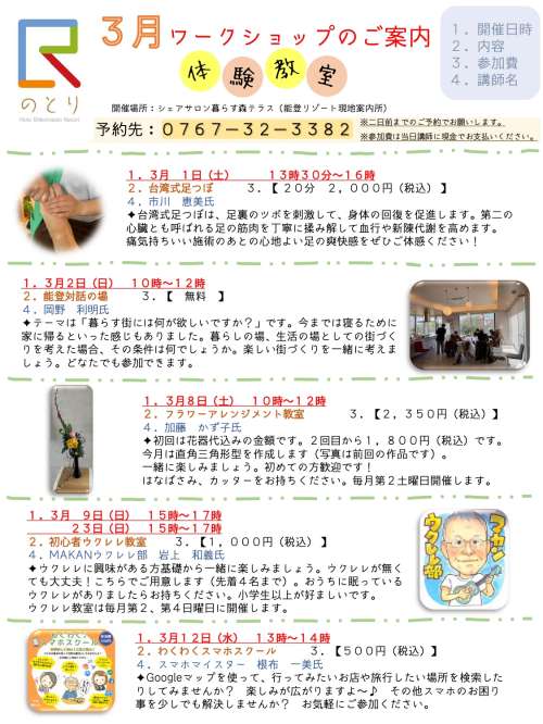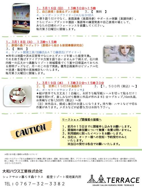 シェアサロン暮らす森テラス【3月ワークショップのご案內】