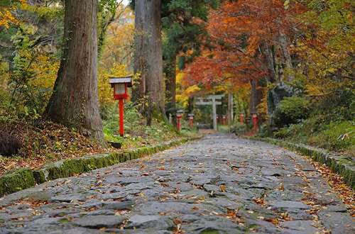 石畳の參道 大山寺參道を歩き、大神山神社へと続く自然石の石畳。 歴史を感じるこの場所の紅葉は和の風情満點。 (別荘地より約7.9km 平成22年11月4日撮影)