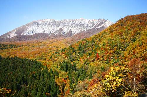 鬼住山(きずみやま) 穴場中の穴場。伯耆町の一角にそびえるこの山の展望臺からは、 裾野の紅葉と正面大山のコントラストを。 (別荘地より約9.3km 平成22年11月中旬撮影)