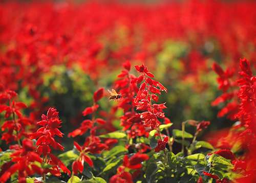 蜜を求めて???。 幾數(shù)ものハチたちが気持ちよさそうにサルビアの花々を行ったり來(lái)たり。