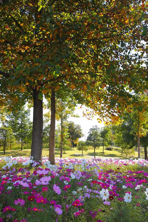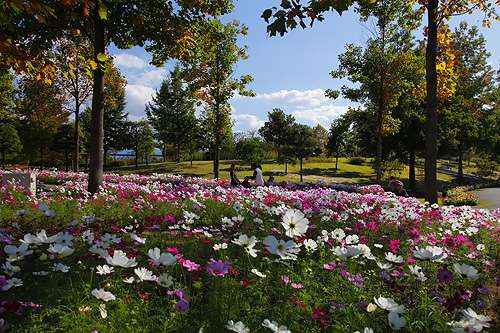 この時(shí)期、コスモスも満開(kāi)。始まりかけの紅葉との共演も。 秋の桜と書(shū)いてコスモス。園內(nèi)を可憐に彩ります。 白と赤、満開(kāi)のコスモスに染まる園內(nèi)。 フラワートレインに乗って園內(nèi)をのんびり巡るのもいいかもしれません。