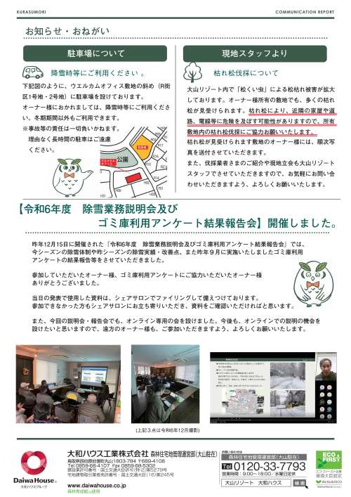 ありますので、所有敷地內の枯れ松伐採にご協力お願いいたします。