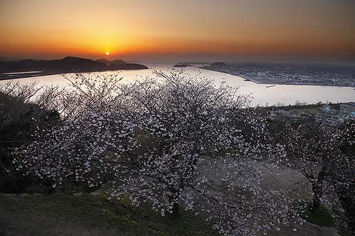 湊山公園?米子城趾 所在地 米子市西町(現(xiàn)地から約18km) 見(jiàn)ごろ 4月中旬 中海に隣接し広大な敷地面積を持つ園內(nèi)、約450本の桜並木にそって 遊歩道が続き、夜は大小約130本のぼんぼりが溫かな光を放って お花見(jiàn)ムードを盛り上げます。またそのお隣、標(biāo)高90mの米子城趾からは 中海、日本海、市街地、そして大山を一望できる360度の大パノラマ。 上から見(jiàn)下ろす一風(fēng)変わったロケーション、青とピンクのコントラストに 魅せられます。