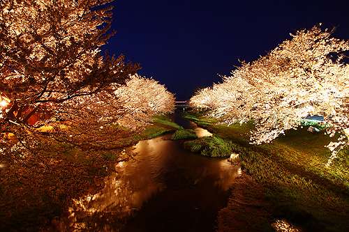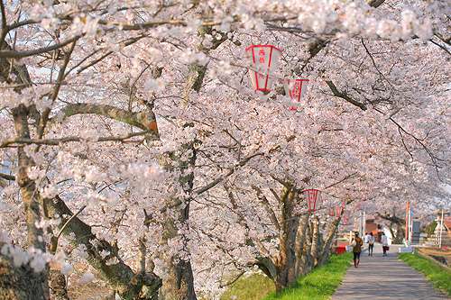 法勝寺城山(ほっしょうじじょうざん)公園 所在地 南部町法勝寺(現(xiàn)地から約19km) 見(jiàn)ごろ 4月中旬 米子市內(nèi)から車で約15分の穴場(chǎng)。南部町を流れる法勝寺川沿い、 阿賀橋あたりまでの約2km、約1000本もの美しい桜が川の両岸を 埋め盡くします。すぐ橫を川が流れる広大な土手は、絶好の観賞 ポイントにして、アウトドア派に最適のお花見(jiàn)バーベキューポイント。 夜になると、ぼんぼりに燈りが燈り晝間とはまた違った 幻想的な風(fēng)景を演出します。