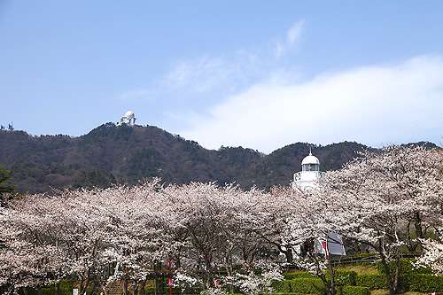 境臺(tái)場(chǎng)公園 所在地 境港市花町(現(xiàn)地から約38km) 見(jiàn)ごろ 4月上旬~中旬 その昔、黒船の來(lái)襲に備え築いた砲臺(tái)であった鳥(niǎo)取藩臺(tái)場(chǎng)の一つ。 山陰で最初に造られた木造?六角洋式の白い燈臺(tái)は明治28年に建設(shè)、 その後、平成3年に復(fù)元。350本のソメイヨシノが咲き誇る園內(nèi)では、 毎年3月下旬から4月上旬の2週間「桜まつり」も開(kāi)催。ライトアップで 浮かび上がる夜桜も必見(jiàn)で、港町情緒溢れる名所を演出しています。