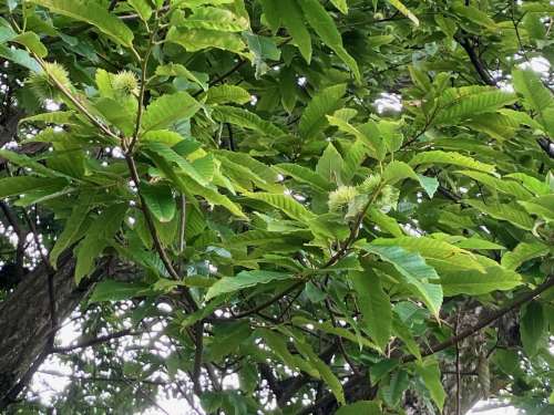 上を見ると栗の木に小さい “いが栗”がたくさん実り始めていました。
