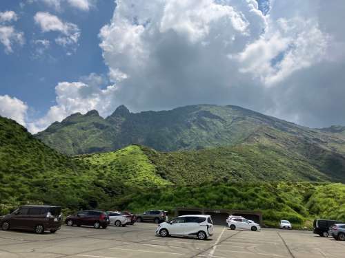 阿蘇山 仙酔峽周回ルート(約5.5km)等に登っている人の車がたくさん駐車されていました。