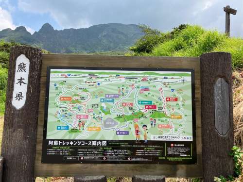 “仙酔峽”登山口の施設(元ロープウェイ乗り場)に入ると、阿蘇山周辺の