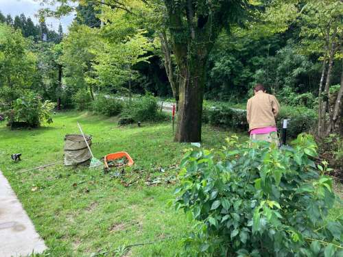 臺風10號により、阿蘇シェアサロンの庭に枝葉がいっぱい散亂して