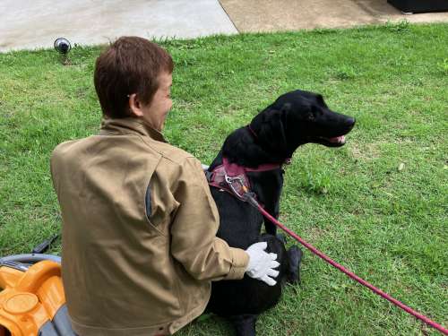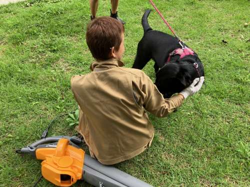 黙々と枝葉の清掃作業をしている時に、オーナー様が “ワンちゃん” と