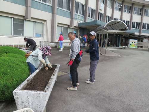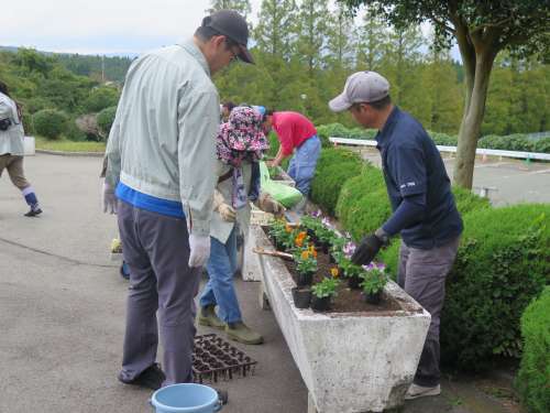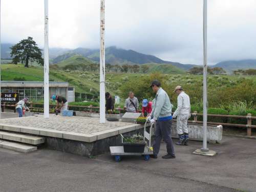 國立阿蘇青少年交流の家で花植えボランティア活動