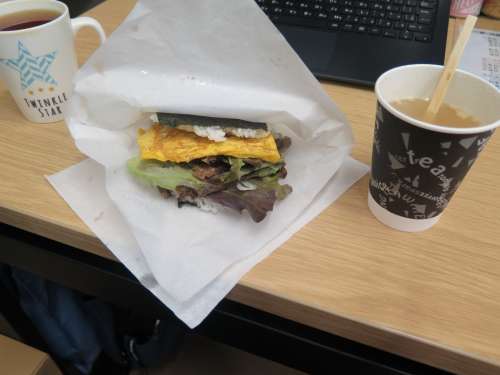 10月10日【たまやさん】(サンドイッチなど) 現地スタッフの私、岡本こと「浦島太郎」はたまごサンド ではなくホットサンドの「ベーコン&ガーリック」と「ケ チャマヨ」を頂きました。