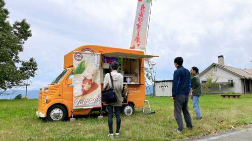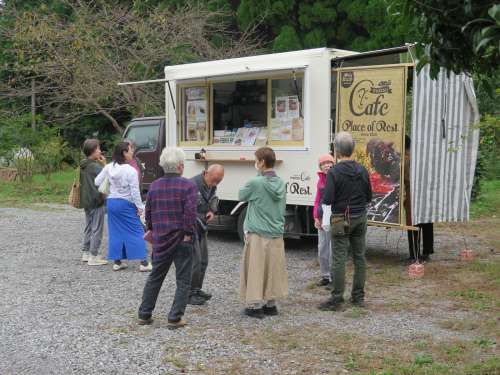 10月に入り,少しずつ涼しくなり阿蘇の山々にも本格的な秋が 訪れました。オーナー様のお庭にある栗の木もたわわに実が なり秋の収穫時期です。 そして、秋と言えば「食欲」、キッチンカーが來場いたしました。