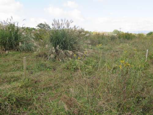 すると突然に草原の風(fēng)景が変わりました。 あれ?一瞬コースを間違えたのかと思うくらいです。 春?夏のモニタリング時(shí)はセイタカアワダチ草やオオオナモミ?ワルナスビが 群生していた場所です。 その風(fēng)景が一変し「原っぱ」の様になっているではないですか。