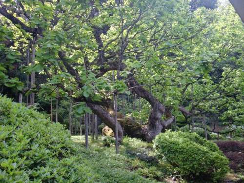地上から出た幹は、すぐ4本の太い支幹に別れ、それぞれ地面を這うように伸びてから立ち上がっています