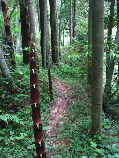 川沿いにある竹林の道を入って行くと、 なんと、ここにも源泉が。 川の近くでモクモクと湯気が出る風(fēng)景は、 なんだか不思議でした。