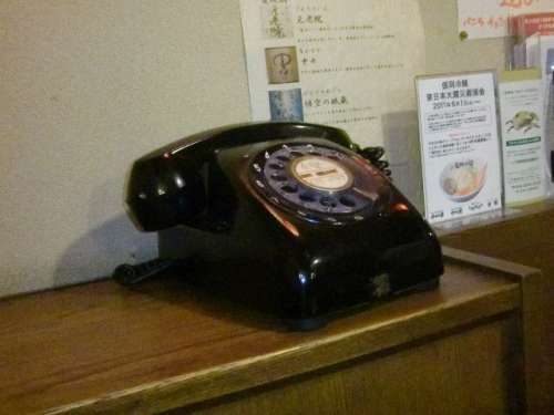 懐かしい“黒電話”があります、壁には1970年代~1980年代アイドルの寫真やレコードが飾られています