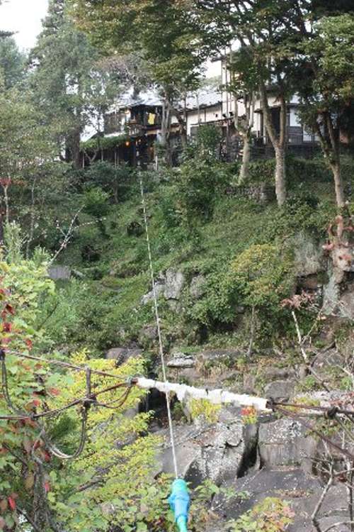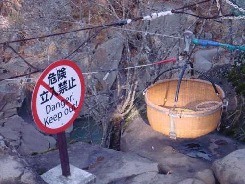 しかし、そこは“つり橋”です。歩くたびにユラユラと揺れます、下は渓谷だけに斷崖絶壁です