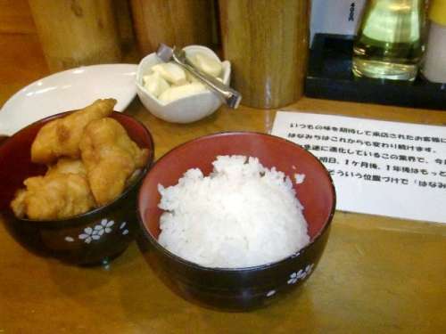 しかも後ろを振り向くと何と~“ご飯と鳥のから揚げ”が無料でサービスではありませんか~!!