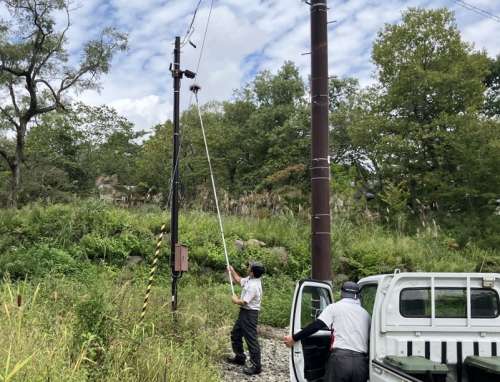 豬苗代ヒルズにて電話線にかかるツル草のチェック
