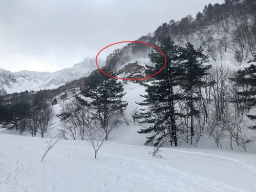 點々と湯気(噴気?寫真の赤丸の辺り)が