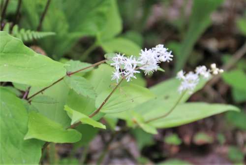 シロバナエンレイソウとも呼ばれ、オオバナノエンレイソウより花弁が小さく橫~斜め下向きに花が咲きます