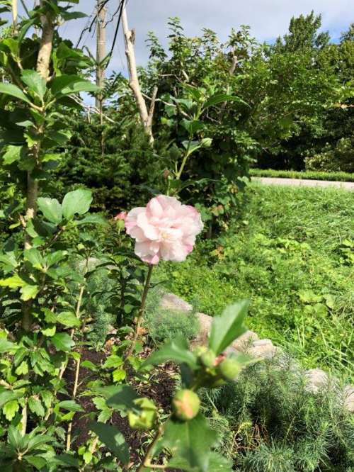 鹿部リゾート內にある「道ひろば」の花壇でムクゲの花が咲きました