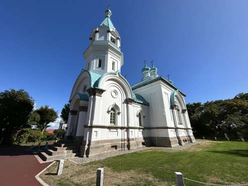 白壁と緑の屋根のハリストス正教會が「ガンガン寺」の愛稱があるようです