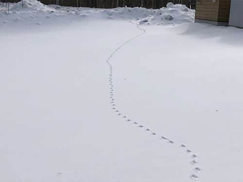 何の足跡か?は分かりませんが白い雪の上にちゃんと殘ってます(*^_^*)