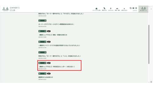 オーナーズクラブでシェアサロンの予約狀況を確認できるようになりました