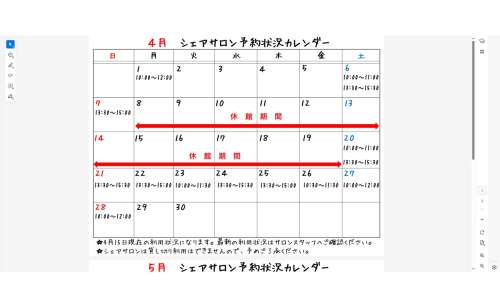 このような形で予約狀況カレンダーを閲覧することができます
