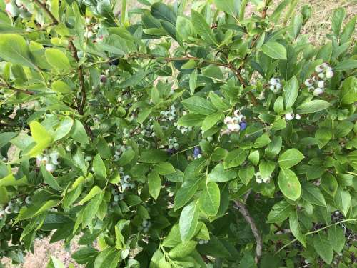 リゾート內で育てられたブルーベリーは実が青々としていて