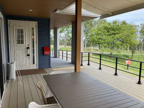 こちらは鹿部シェアサロンの玄関前のデッキです