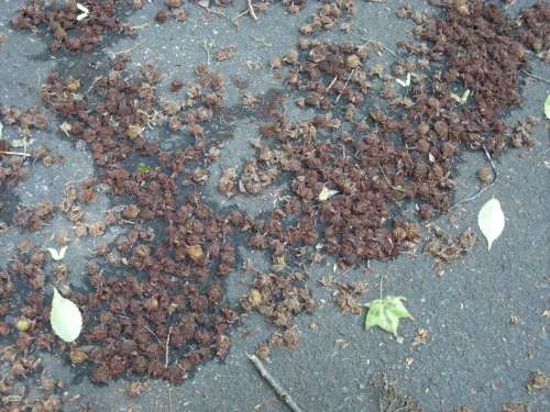 続いてエコーラインの北側へ移動し、途中で薪割りをしていたオーナーさんとおしゃべりを楽しんで、情報をいただいたあと『あかまつ平』から『みずき平』へと進むと、道一面にブナの実が落ちているのをみつけました。見上げると太いブナの樹が1本。自然度が一番高いⅡ期にはブナが何本かありますが、その中でも太い樹です。リョウブの花はそろそろ終わりを迎えていましたが、オニノヤガラは咲き始めたところ。薄暗い樹々の下ですくっと立ち上がる姿はまさに矢のようです。