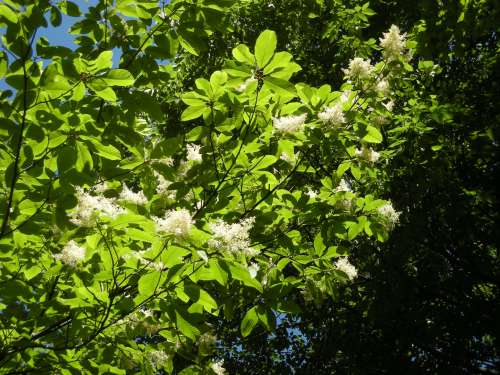 北海道南部から九州の丘陵や山地の尾根などに生育する落葉高木。6~8月に小さな白い葉を10~20cmの穂狀につける。甘い香りがあるので蟲をよく集める。幹はナツツバキの肌に似て樹皮がはがれ落ちる。若葉が食用になり、救荒植物として官令によって栽培されたことから名がついたといわれる。寫真は開花後。