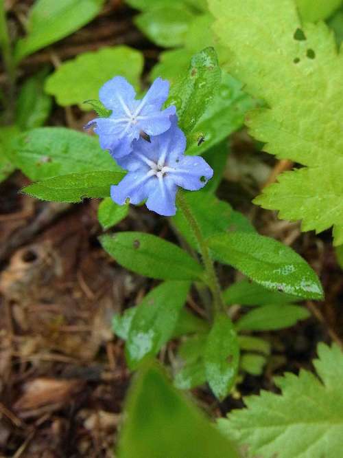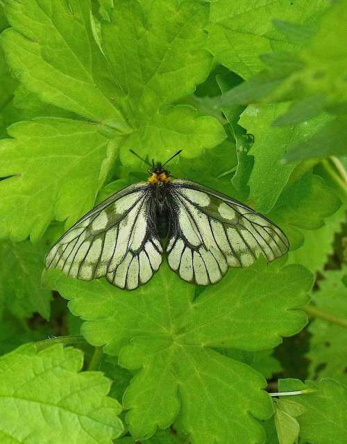 道を歩いていると黒貓がすり寄って來て、少しだけ遊んでスッと立ち去って行きました。散歩の途中に変なヤツを見つけたので確認に來たのかもしれません。貓と別れて少し進むと、道ばたにオオヤマオダマキが花をつけていました。地味な色ですが、複雑な形をしています。近くにはホタルカズラの青い花もありました。この花は蕾の時はピンク色をしていて、開くと徐々に青くなるので、1つの株で青い花とピンクの花が咲いているのを見ることもあります。近くの葉の上ではウスバシロチョウが翅を休めていました。鱗粉が少ない半透明の翅が美しい蝶です。