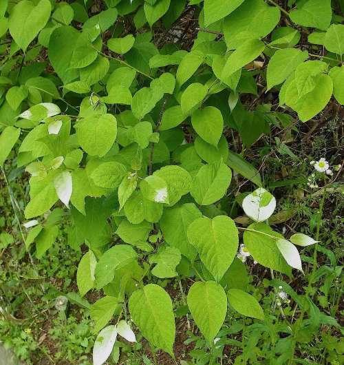 ■左:ツルアジサイ(蔓紫陽花)別名ゴトウヅル、ツルデマリ ユキノシタ科アジサイ屬 北海道から九州の山野に生育するつる性落葉樹。木や巖に絡みつき6~7月、白いガクアジサイに似た花をつける。屬は違うがよく似ているイワガラミは裝飾花の萼片が1枚。葉の縁の切れ込みがツルアジサイは細かくイワガラミは粗く不規則なので區別がつく。アジサイの仲間で蔓になるのでついた名。 ■中:タニウツギ(谷空木) スイカズラ科タニウツギ屬 北海道西部から本州(主に日本海側)の日當たりのよい山地に生育する落葉小高木。日本固有。5~6月、漏斗狀で5裂する桃紅色~紅色の花を數個まとめてつける。下部からよく枝分かれし株立ちする。花が美しいので植栽されることも多い。莖の中が中空になっていることから空木、谷によく自生することから谷とついた。 ■右:ウリハダカエデ(瓜膚楓)の果実 カエデ科カエデ屬 本州から九州の山地に生育する落葉高木。雌雄別株。日本固有。5~6月に淡緑色から淡黃色の花が十數個下垂する。葉は淺く3~5裂する。紅葉するものと黃葉するものがある。名前は若木の樹皮がマクワウリの果皮に似ていることからついた。