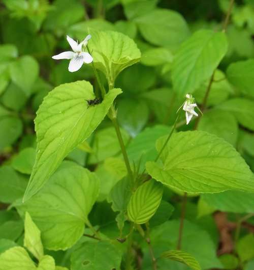 ■左:マタタビ(木天蓼) マタタビ科マタタビ屬 北海道から九州の山地の林縁に生育する落葉つる性木本。果実のつく両性花の株と雄株がある?;à螁Dく頃に枝の上部の葉が白くなる?;à习驻?、芳香がある?;àKわる頃に葉が白から赤に変化するのはミヤママタタビで、ネコも喜ばないそうだ。キウイフルーツの仲間。 ■右:エゾノタチツボスミレ(蝦夷の立坪菫) スミレ科スミレ屬 北海道から本州(岡山県以北)の山地に生育する多年草。莖は直立し15cm~40cmになる大型のスミレ。4月下旬~6月に白色~淡紫色の花をつける?;à蝹熔停ㄗ笥窑位ㄛ停─却皮筏伽我徊浚ɑㄖ─摔饷ⅳ毪韦貜?。北海道に咲くことからエゾとついた。タチは花が終わる頃に莖が立ち上がることから。ツボは塀に囲まれた庭や道ばたを意味する坪で、身近に見られることから。スミレは花の後ろにある膨らみ(距)が大工道具の墨壺に似ているのでついたという説が有力。