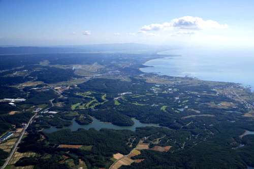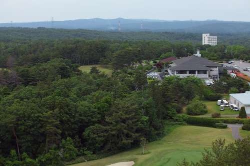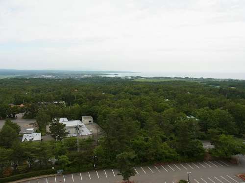 遠景を見るために隣接する能登ロイヤルホテルの屋上に上がると林のすぐ先には海が。あまりの近さに驚いてしまいました。海の近くに育つクロマツが多いなと歩きながら感じていましたが、樹々に囲まれているので海の存在を忘れていました。これだけ近いとマリンスポーツを楽しむのにもよい環(huán)境ですね。