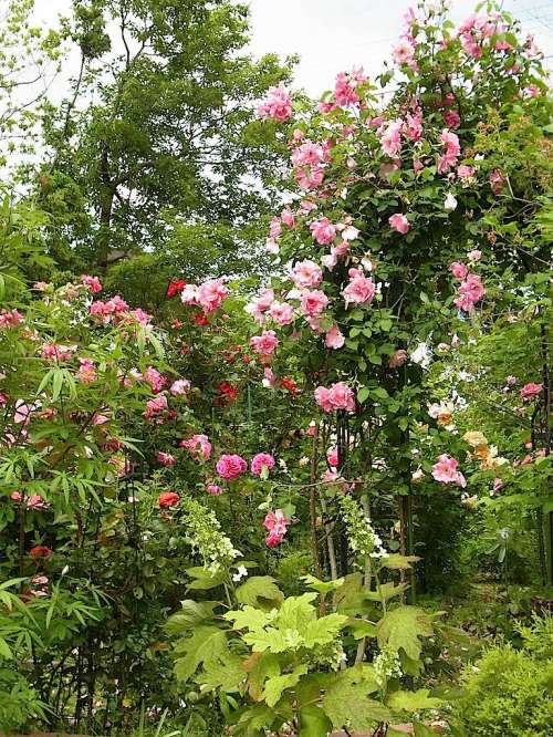 この季節(jié)はちょうどバラの開花期。SLOWNERの取材でうかがったオーナー様のお宅はバラの花でいっぱいでした。特にツルバラがお好きだということで、いくつものアーチに仕立てられた様々な色のツルバラが立體感を出し、ボリュームのあるバラの庭になっています。バラの香りで包まれ仕事を忘れてしまいそうな穏やかな時間を過ごすことができました。