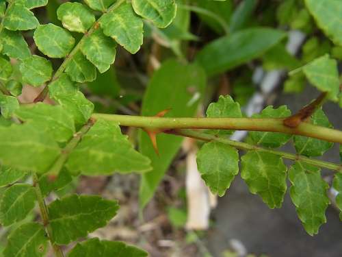 刺は向き合ってつく(対生)。イヌザンショウは互生。