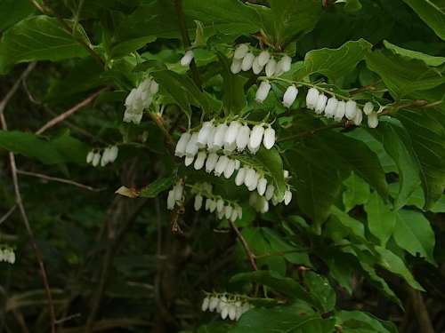 東北地方から九州の乾燥ぎみの林などに生育する落葉小高木。5~6月、釣り鐘狀の白い花を1列に並んでつける。果実は上向きにつくが花のようには目立たない。幹がねじれることからついた名。葉を食べたヤギが死んだという記録が殘る有毒植物。