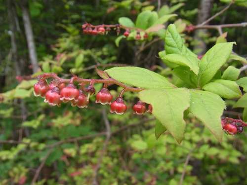 北海道から九州の山地に分布する落葉低木。5~6月、赤みを帯びた淡い黃緑色から鮮赤色をした丸みのある鐘狀の花を下向きに多數(shù)つける。秋に真っ赤に紅葉しうつくしい。果実は黒く熟し食べられる。花崗巖の土地を好むので関東ローム層では見られない。夏頃からハゼのように紅葉することからついた名。