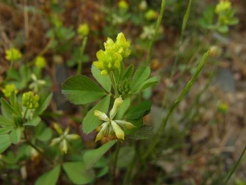 ■右:コメツブツメクサ(米粒詰草) 別名キバナツメクサ、コゴメツメクサ マメ科シャジクソウ屬