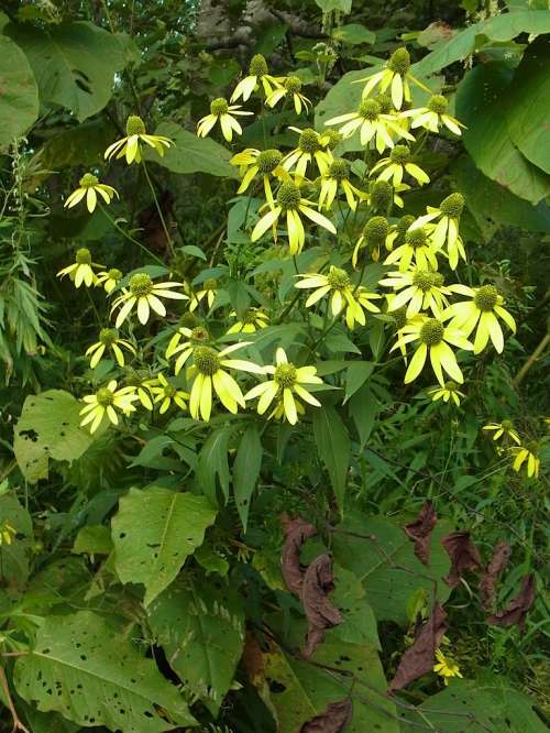 ■左:オオハンゴンソウ(大反魂草) キク科オオハンゴンソウ屬 北米原産の多年草。日本各地で野生化した。8~9月に黃色い舌狀花が下に垂れた花をつける。中心部の筒狀花のかたまりは盛り上がる。下部の葉は3~7裂する。日本在來種のハンゴンソウと同様に葉が深く切れ込むことからハンゴンソウとついた。八重咲きの変種はハナガサギク(花笠菊)という。繁殖力が強く生態系への影響が懸念され、外來生物法により特定外來生物に指定されている。北海道では防除の対象になっていて、「入れない」「捨てない」「拡げない」ように大沼周辺でも除草作業が行われている。よく似ていて野生しているアラゲハンゴンソウ(紫色を帯び筒狀花が黒紫色)は防除の対象にはなっていないが注意が必要。 ■中:ヤマハハコ(山母子) キク科ヤマハハコ屬 北海道から長野県?石川県以北の山地などに生育する多年草。雌雄異株。8~9月に多數の花をつける。花弁のように見える総苞片はカサカサしていてドライフラワーにもなる。葉は綿毛におおわれる。細い線形の葉のカワラハハコに比べ葉が広いが、中間型も多い。あまり枝分かれしない。ハハコグサに似ていて山に生えることからついた名。 ■右:オオアワダチソウ(大泡立草) キク科アキノキリンソウ屬 北アメリカ原産の帰化植物で全國各地に野生化した多年草。北海道ではセイタカアワダチソウより多い。開花期はセイタカアワダチソウより早く7~9月に黃色い花を多數つける。草丈は低く、松の枝狀にまばらに花をつける。セイタカアワダチソウの花穂は円錐狀で先端が尖る。莖や葉はほぼ無毛で(セイタカアワダチソウは有毛)、大群落をつくることはない。花がセイタカアワダチソウより大きく、黃色い花が泡立つように見えることからついた名。