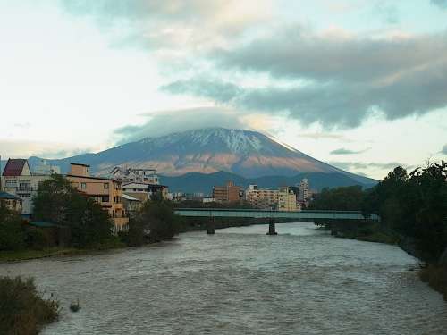巖手山は標高2,038mで巖手県最高峰。北上川は東北最大の河川。10~11月には河口から約200kmの盛岡市までサケが遡上する。夕顔瀬橋際には『夕顔瀬かっぱ』が住んでいたという伝説があり、橋のたもとに説明板とカッパの像がある。
