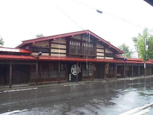 市役所のほど近く、道の両側の建物の梁の下が歩道になっていて、今でいうアーケードが続いています。角に建つ立派な建物を覗くと日本酒が並んでいました。この鳴海家住宅は造り酒屋で市の有形文化財の指定を受けているそうです。突然の訪問にもかかわらず丁寧に酒蔵や大石武學流の庭園(國の登録記念物)の説明をしてくださいました。