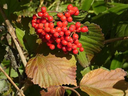 ■右:ガマズミ(萊蒾)別名アラゲガマズミ、ヨソゾメ、ヨツズミ スイカズラ科ガマズミ屬